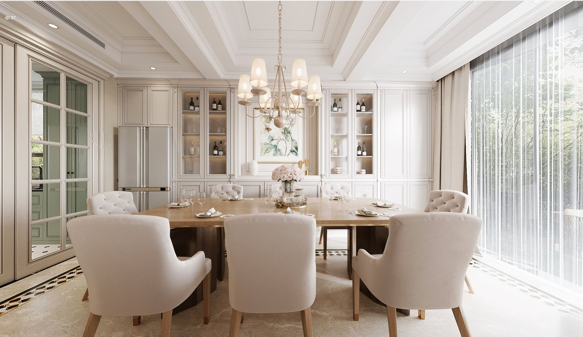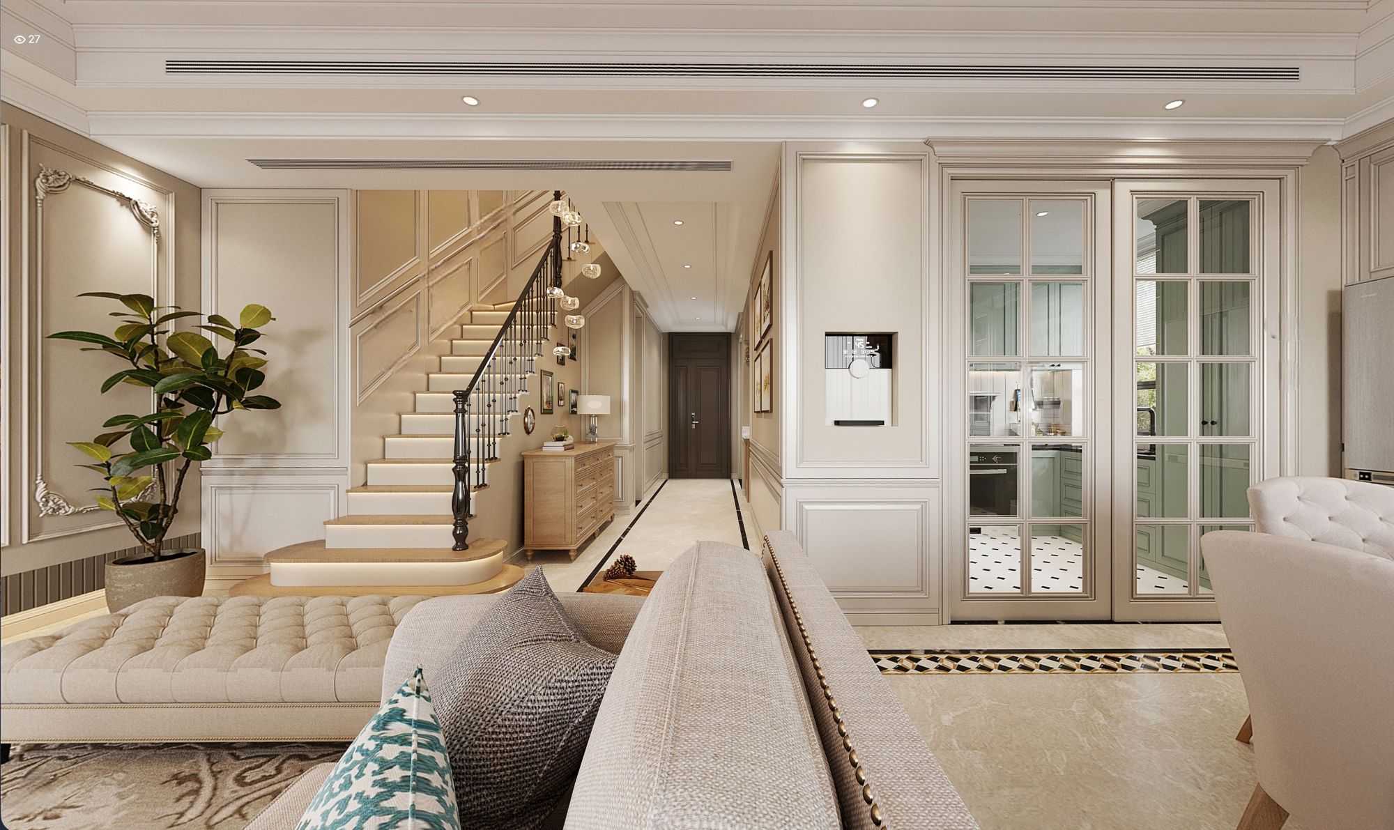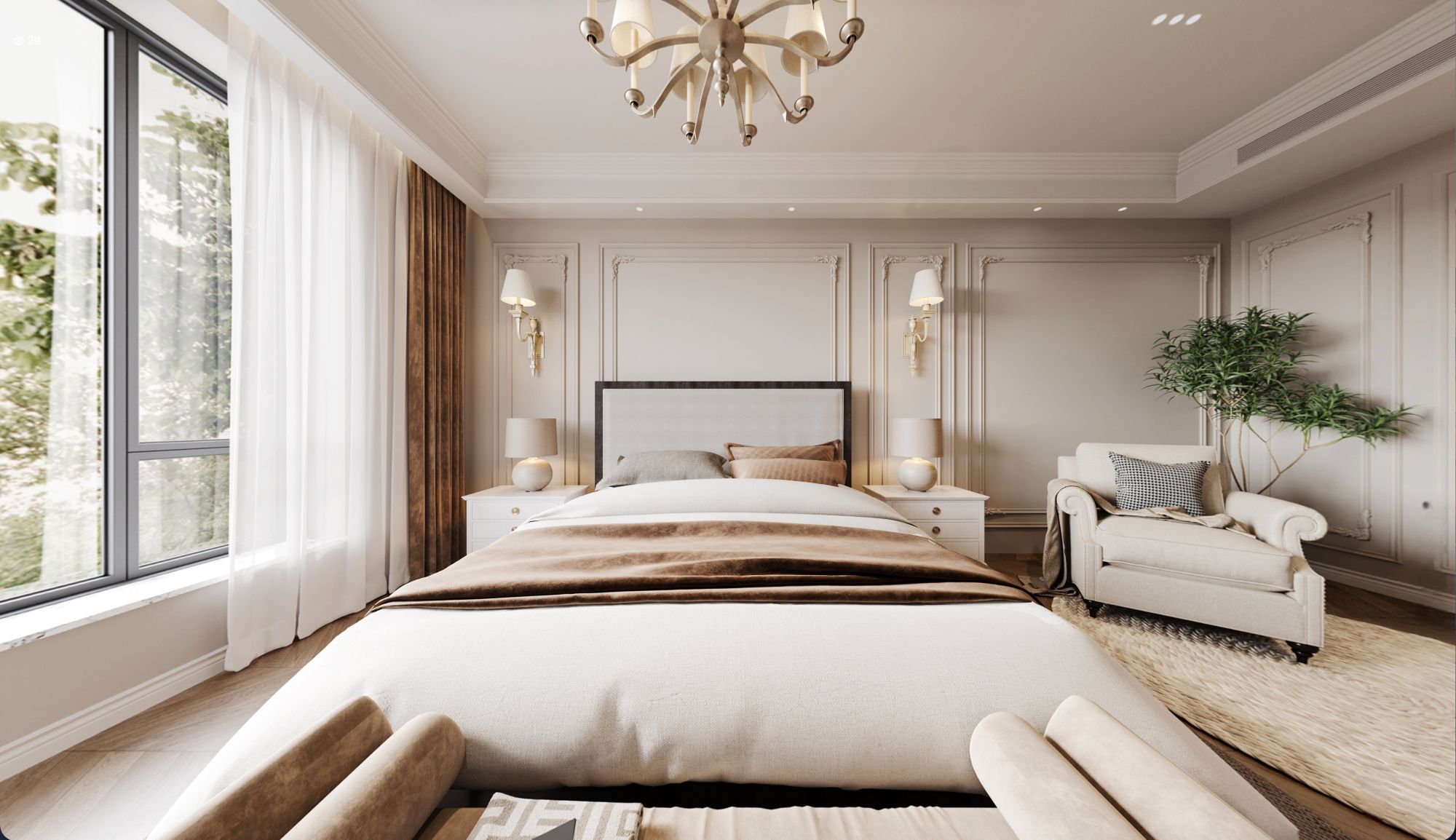 “浪漫优雅、精致实⽤” 的核⼼诉求。设计既保留了法式⻛格的经典底蕴,⼜通过现代设计语⾔与材质⾰新,让空间更适配现代家庭的⽣活⽅式,最终将建联・⾹颂湾叠拼别墅打造成⼀处兼具仪式感与归属感、既精致典雅⼜舒适宜居的理想栖居空间。